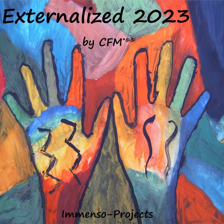 1.) das Cover zu "Externalized 2023" mit einem bislang unveröffentlichten, neuen, zeitkritischen Song "A A Ásyl" als künstlerische Persiflage zu hören/sehen als Vorab-Movie (Veränderungen etc. möglich). Wichtiger Kommentar dazu: Sicherlich ist das gewählte Song-Thema gerade in 2023 ein "heißes Eisen" oder kontrovers zu sehen. JA, wir haben doch viel Power und Möglichkeiten in unserer Zeit (s. Song "La Forza"). Aber - wenn der Mensch immer wüsste, was er tut (Song: "If Man Only Knew"); oder die eigenwillige Sprach-Soundteppich-Interpretation eines Häuptlings. Hmm, alles eine "De-Generations" unsere Menschheit? Interpretieren Sie oder Ihr selbst musikalisch und bitte "Don't Worry" (vgl. Song), denn "Spheres" (weiterer Song) und Platz ist doch für Alle oder alle Gedanken auf diesem Globus, nicht wahr? Wie auch immer: Eigentlich "nix Neues" auf der LP interpretiert .... es befinden sich einige angedeutete Zeitthemen um das Jahr 2023 "extrahiert" auf der LP und diese sind nun mal heikel oder alt bekannt"?". Die jeweils differenziert gewählten Klangwelten sollen auch ein wenigen entführen in individuelle Phantasien. Dazu eben auch die oben angesprochenen, selbst geschnittenen bzw. realisierten Song-Movies, die aus der ganzen Welt eigene oder fremde Szenen / Erlebnisse wiedergeben; beispielsweise vgl. 100 Jahre altes, ³song-angepasstes Filmmaterial zu "A A Ásyl" (³Movie-Filmsequenzen aus einem Archiv genutzt in Eigenproduktion).
